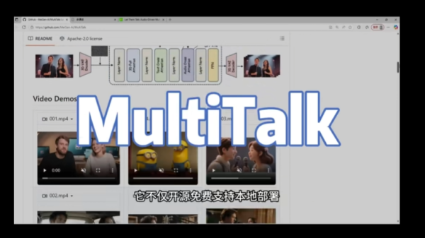 MultiTalk项目地址   GitHub项目地址:https://github.com/MeiGen-AI/MultiTalk ​​项目简介​​MultiTalk是由中山大学、美团等机构联合开发的音频驱动多人对话视频生成框架...