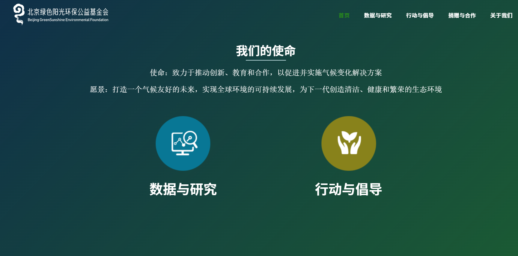 今天,我想要向大家介绍一个致力于推动全球环境可持续发展的公益组织——北京绿色阳光环保公益基金会。自2014年经北京市民政局批准成立以来,这个组织就以推动创新、教育和合作,促进并实施气候变化解决方案为使命,旨在打造一个气候友好的未来,为下一代创造清洁、健康和繁荣的生态环境。