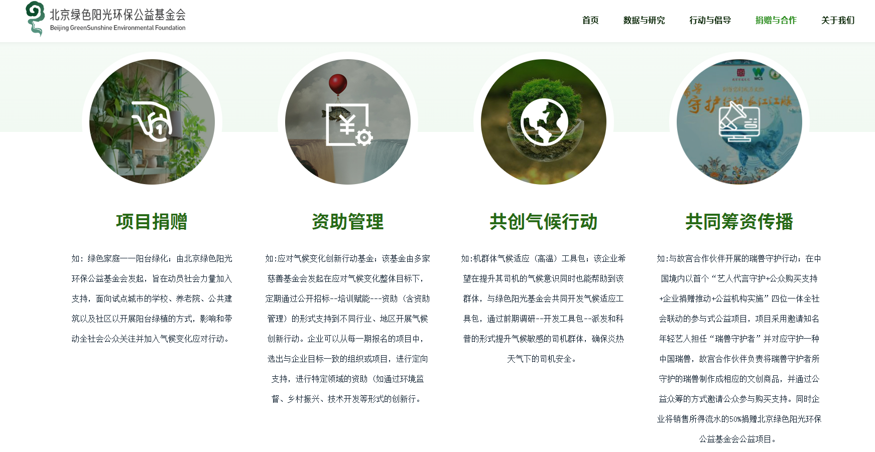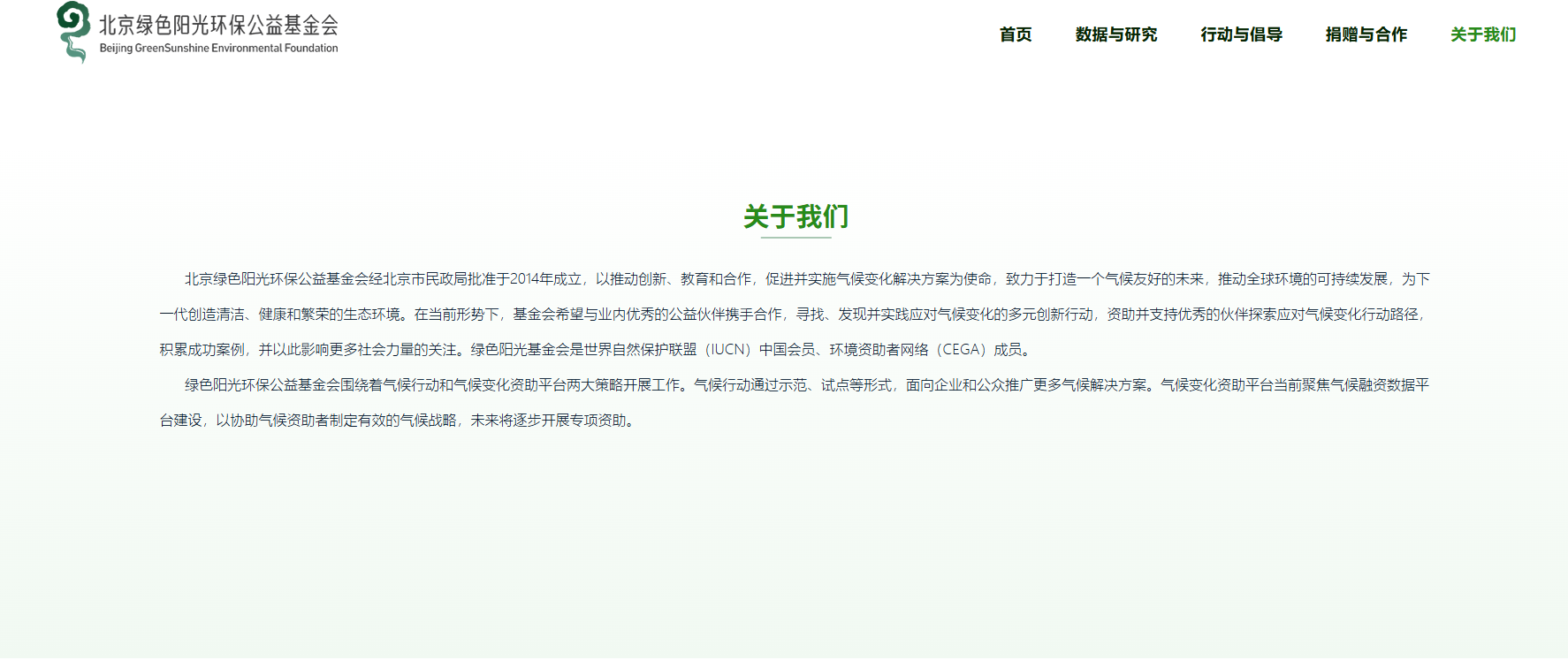 此外,作为世界自然保护联盟(IUCN)中国会员和环境资助者网络(CEGA)的一员,北京绿色阳光环保公益基金会展现了其在国际环保领域的影响力和专业性。它不仅是业内交流合作的重要桥梁,也是发现和支持多元创新气候行动的关键力量。