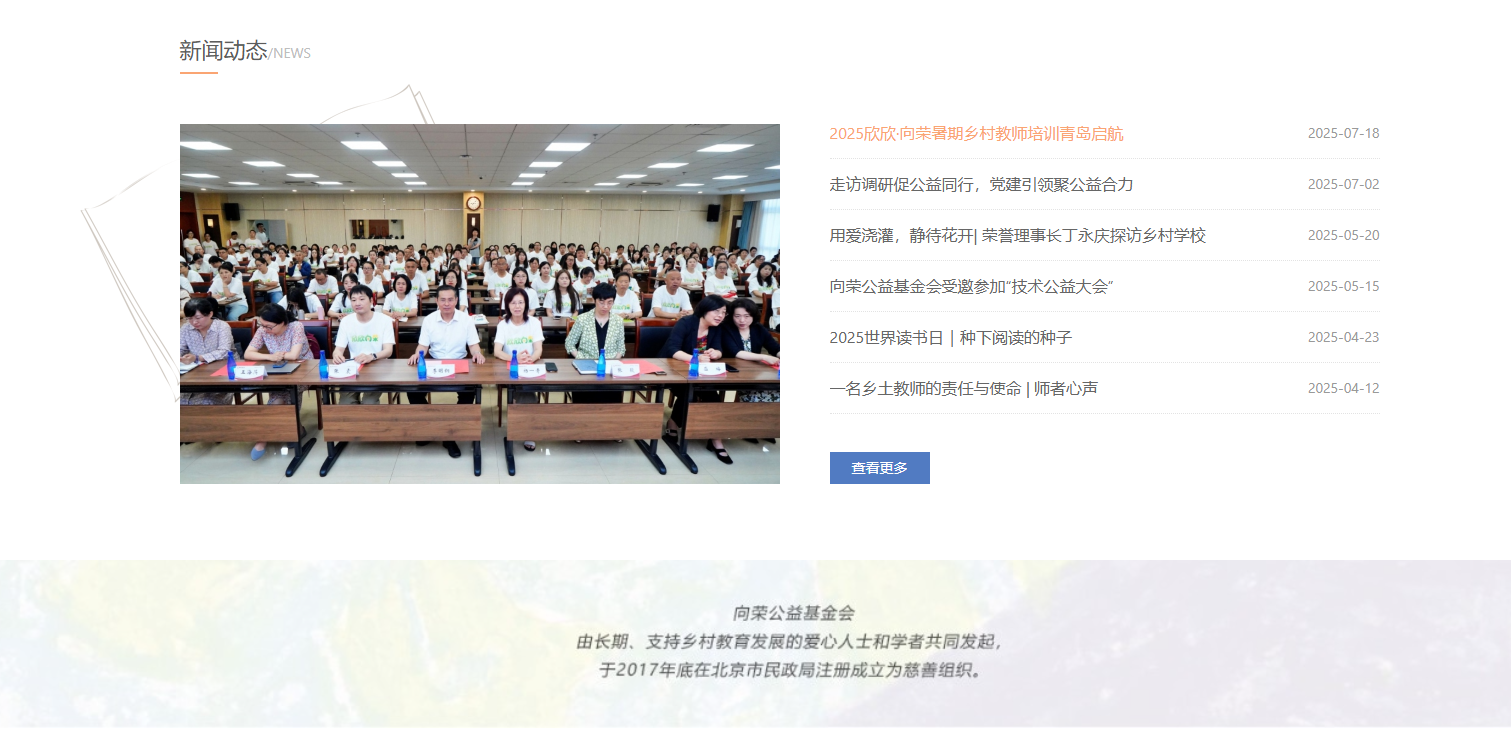 此外,向荣公益基金会还积极寻求合作与发展,与国内外多个合作伙伴及高校共同努力,推动乡村振兴、乡土教育的发展。2024年5月,基金会更是与中国农业大学人文与发展学院进行了深入交流,探讨进一步合作的可能性。