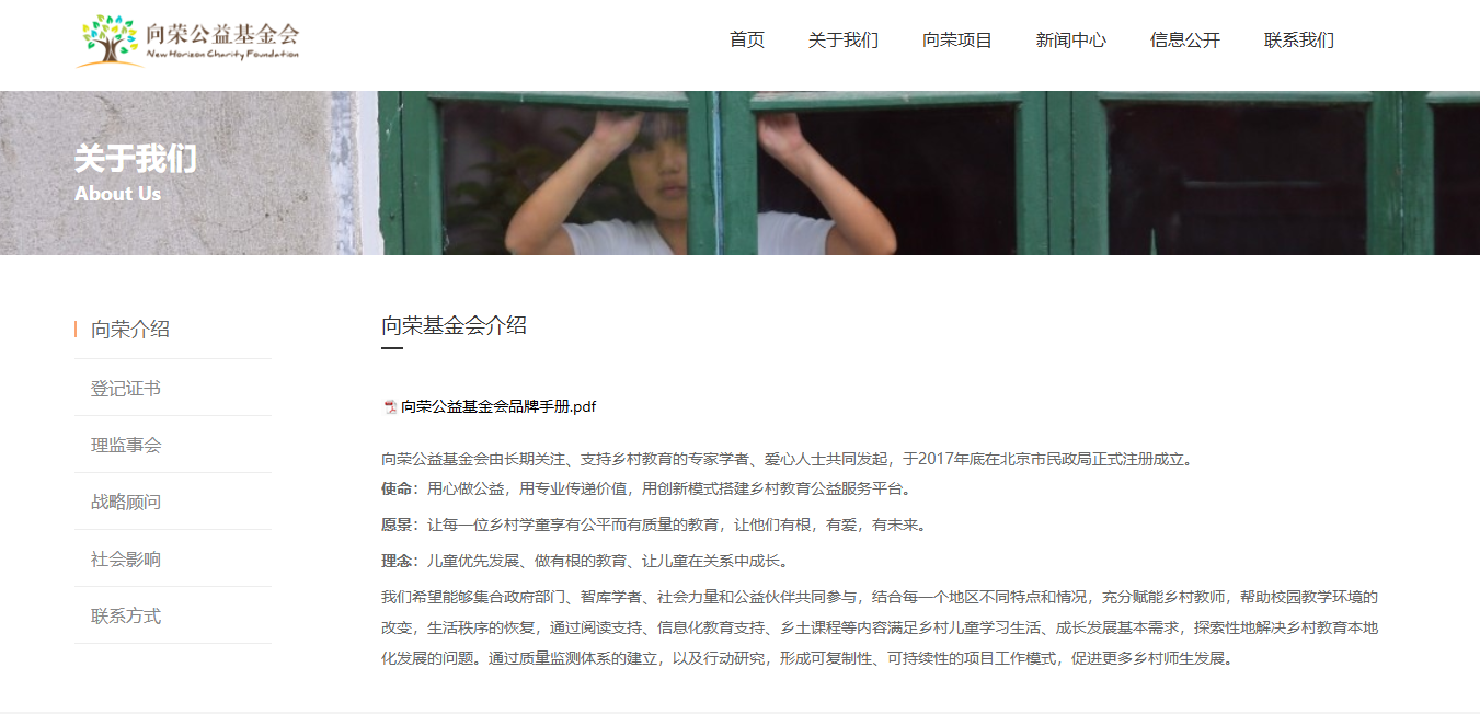 今天我想向大家介绍一个致力于乡村教育公益服务的组织——向荣公益基金会。它由一群心系祖国的老一辈华侨华人、热心乡村教育的企业家以及社会各界的专家学者和爱心人士共同发起,并于2017年底在北京市民政局正式注册成立。其使命是用心做公益,用专业传递价值,通过创新模式搭建起乡村教育公益服务平台。