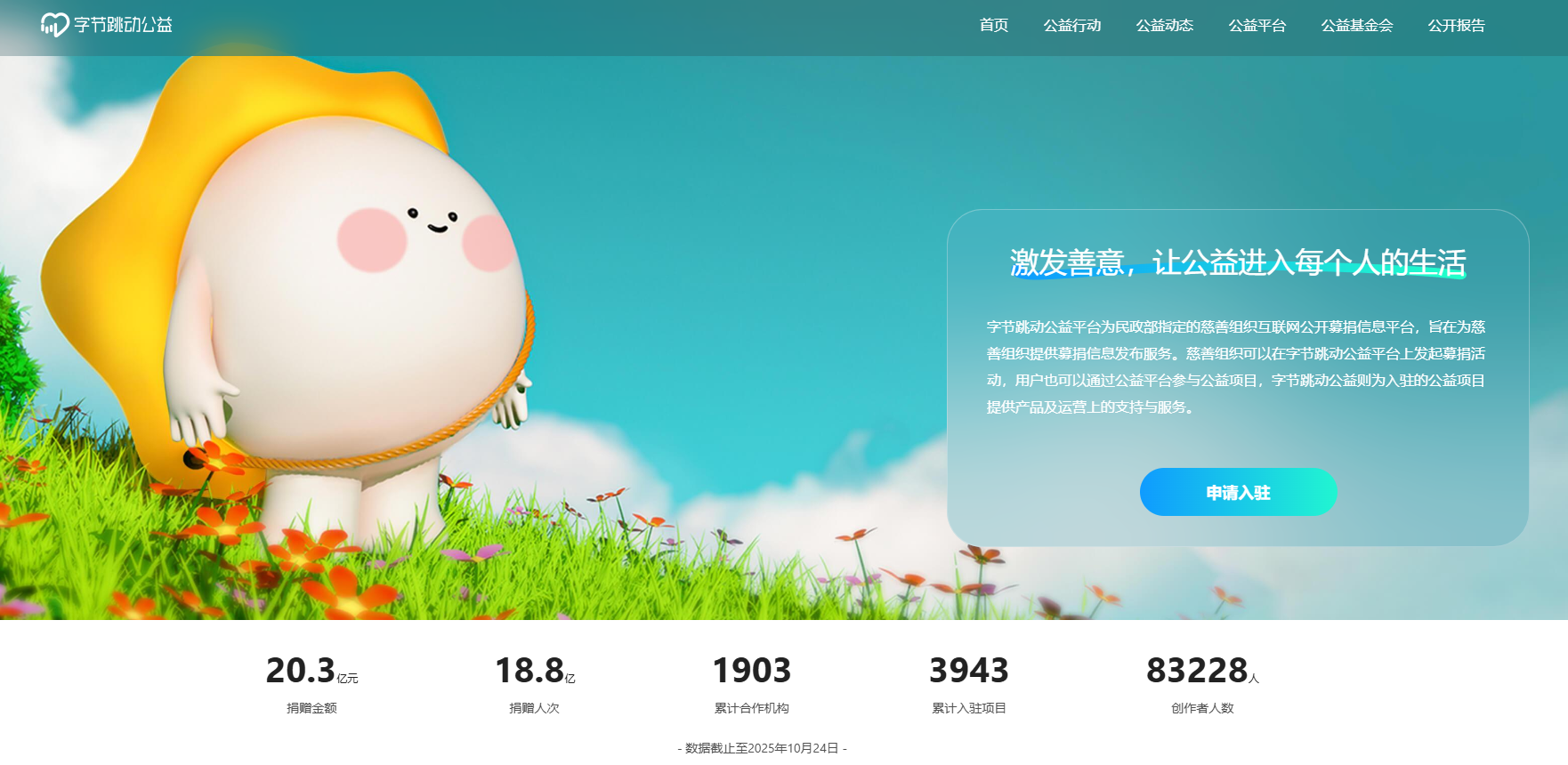 此外,字节跳动公益还为入驻的公益项目提供从产品到运营上的全方位支持与服务,极大地提升了公益活动的透明度和参与度。