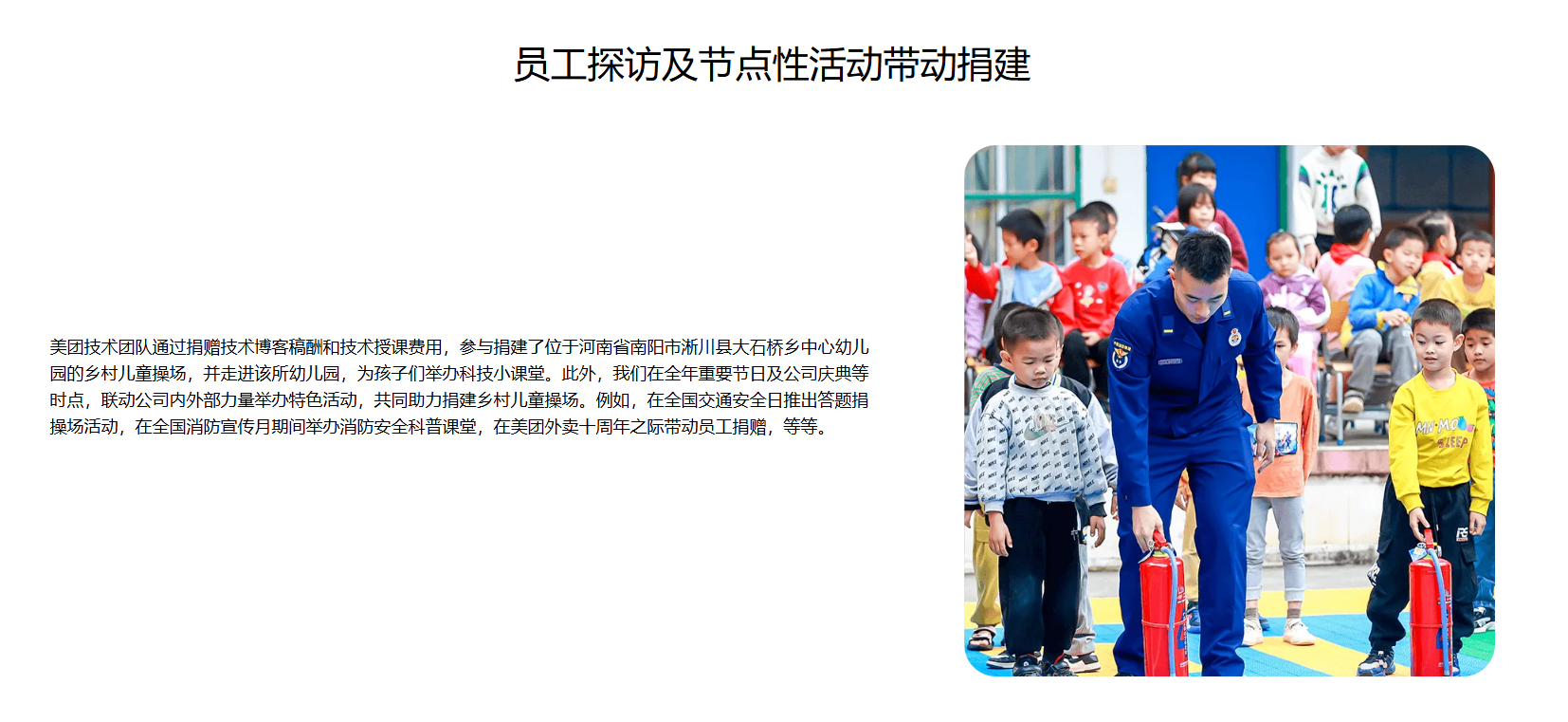 想象一下,那些孩子们能够在崭新的操场上尽情奔跑、欢笑,是多么美好的画面啊!这不仅仅是为孩子们提供了一个玩耍的空间,更是为了让他们能够快乐成长,拥有更加光明的未来。美团公司及员工积极参与到捐建活动中,展现了企业社会责任感的一面。