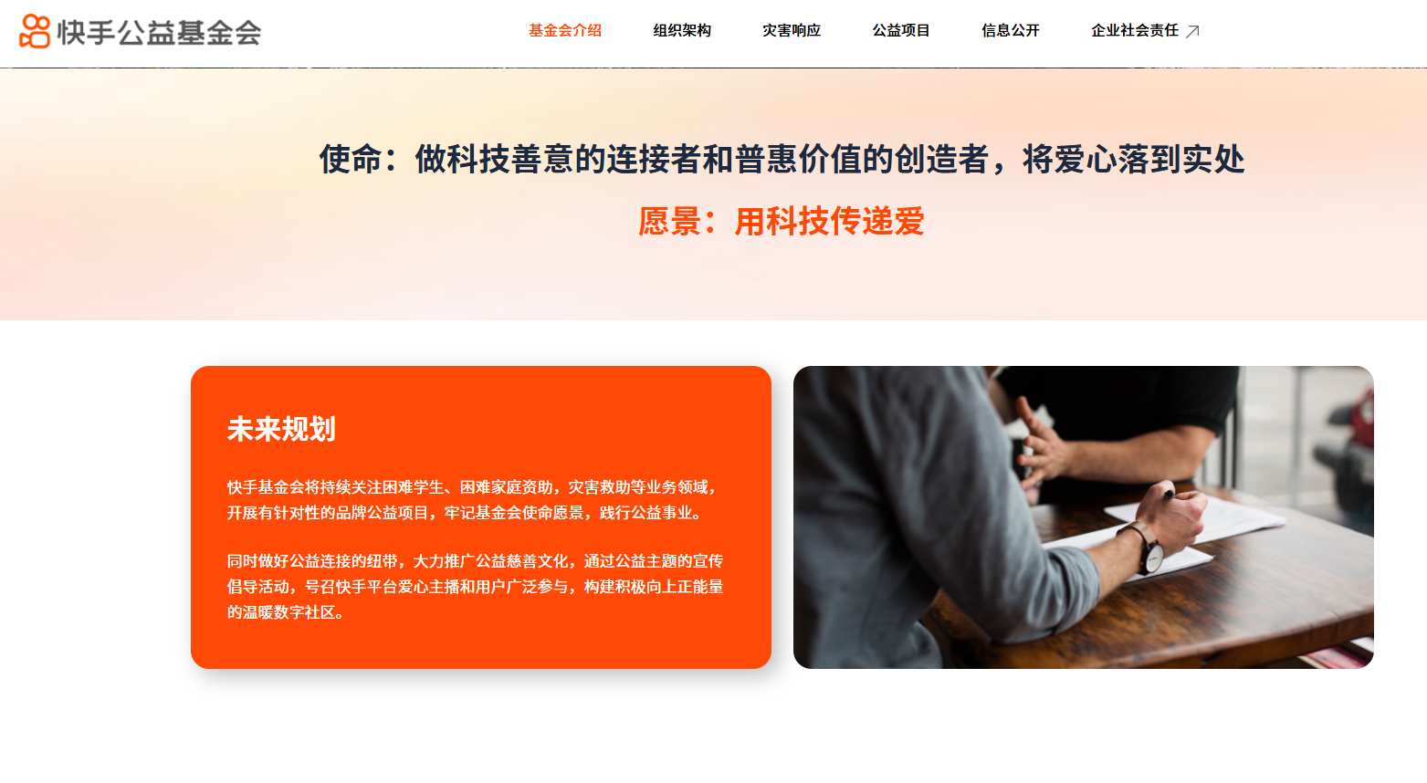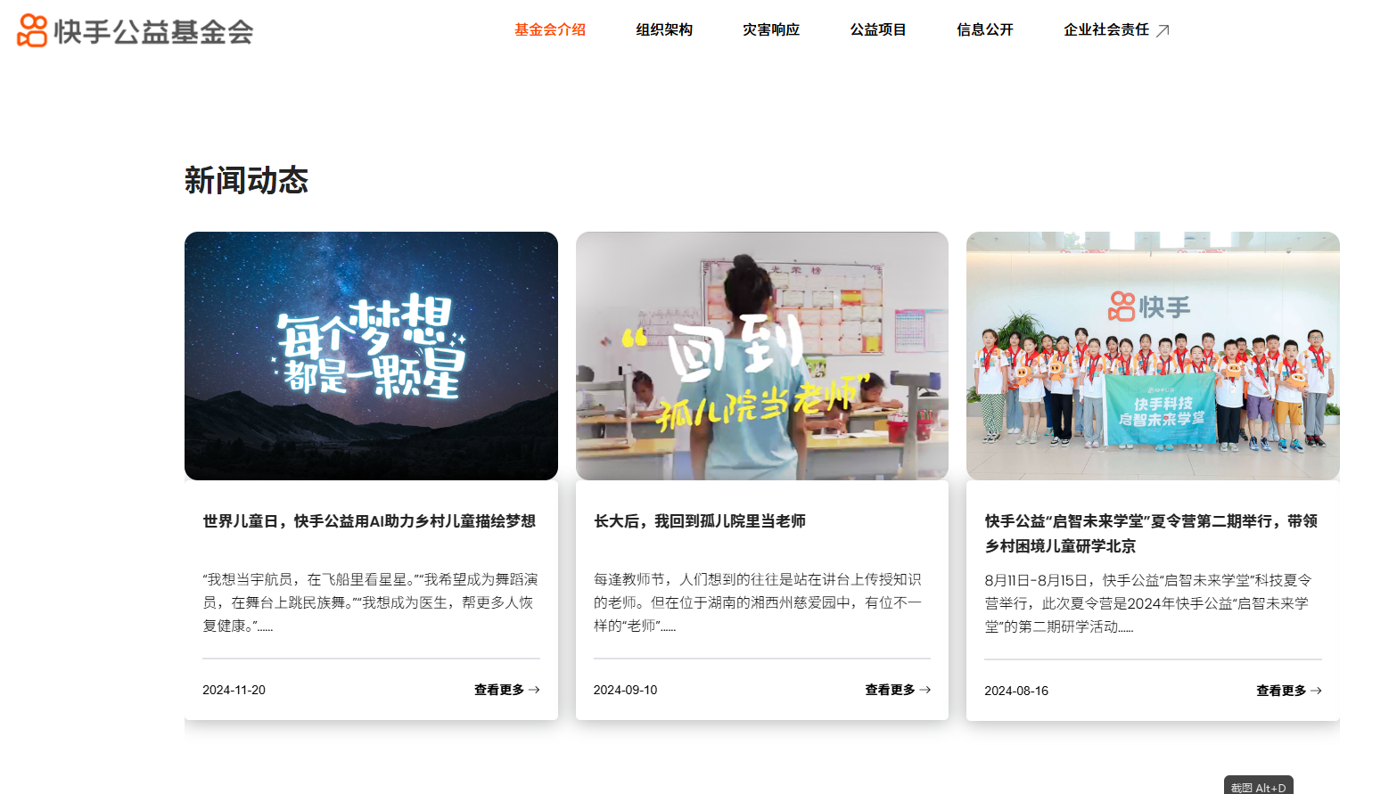 自成立以来,快手基金会便致力于青少年教育、困难家庭帮扶及灾害应急救助等多个领域,通过一系列创新项目,为社会贡献着自己的力量。