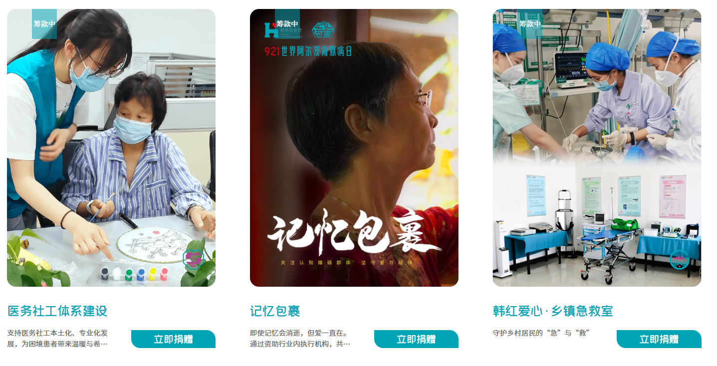 核心项目:“百人援X”系列(如百人援青、百人援贵)、复明中心、爱心药箱等