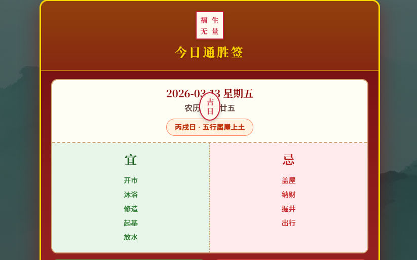 - 运势标签(吉🛕/ 凶⚠️/ 中平➖)