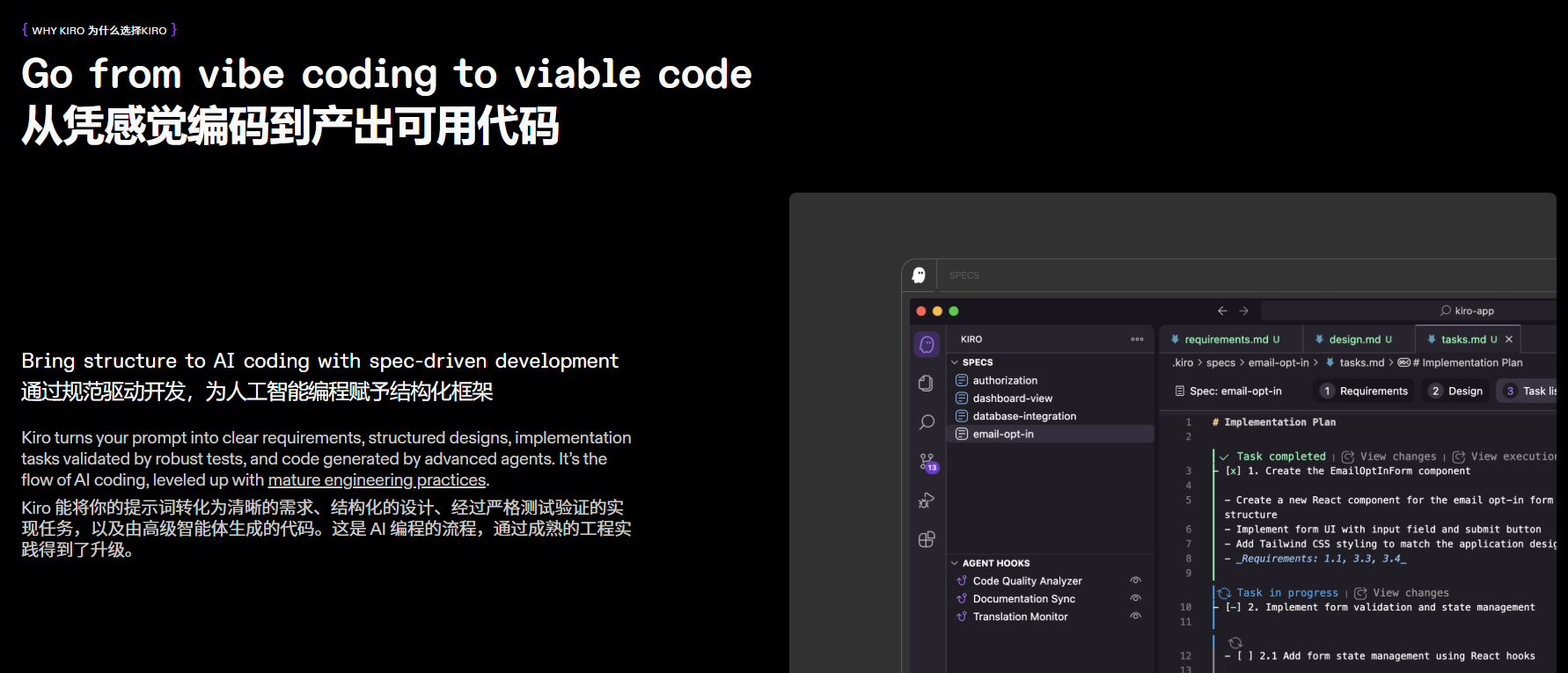 design.md(含页面结构/视觉规范) - •任务列表:生成