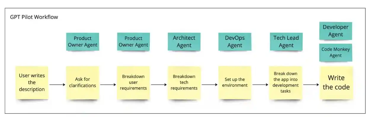GPT Pilot 是 GitHub 上热门的开源 AI 开发工具,拥有 33.4k 星标 和 3.4k Fork。该项目由 Pythagora 团队开发,旨在通过 AI 协作完成全栈开发任务,覆盖产品经理、架构师、程序员、测试等角色职责。