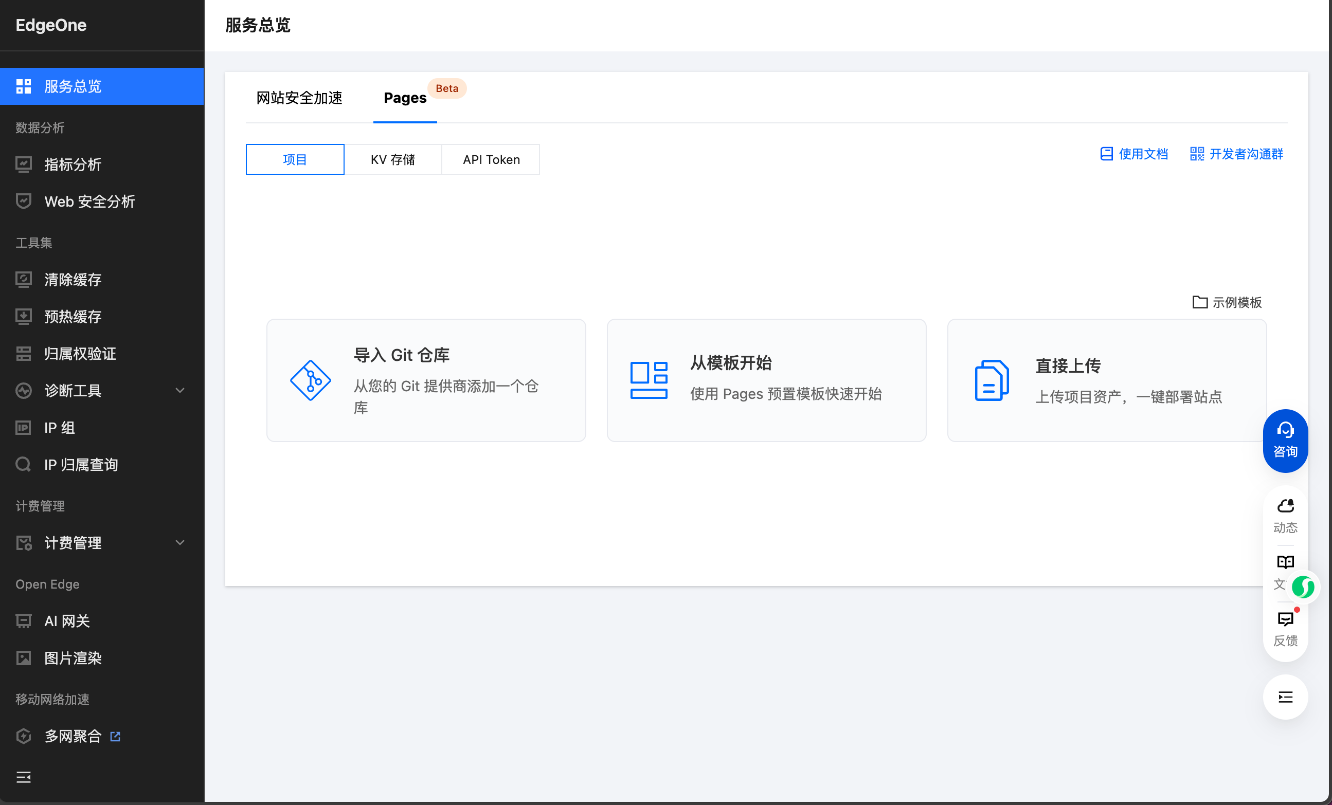 EdgeOne Pages 是一款专为独立开发者设计的全栈部署平台,主打零配置云端发布。它能将开发者从服务器运维、环境配置、SSL证书申请等繁琐工作中解放出来,实现「代码写完即上线」的极简体验。